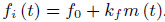 Ricordiamo il parametro kf come legame tra frequenza istantanea fi(t)e messaggio da trasmettere m(t)