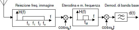 Fa uso anche di una frequenza intermedia fM di servizio, detta Media frequenza