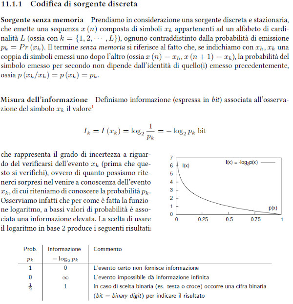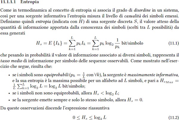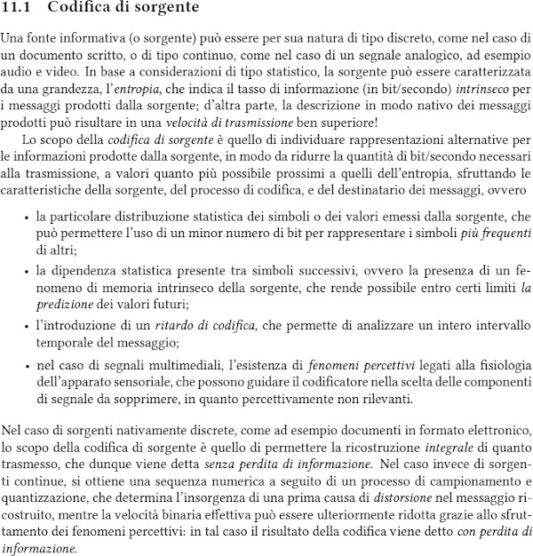 La Codifica di Sorgente studia la minima quantità di simboli con cui è possibile tramettere un messaggio, detta Entropia.