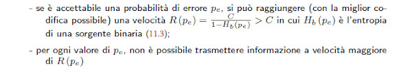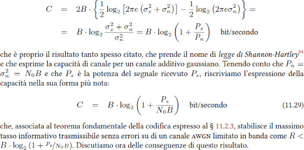 dove si vede che la Capacità del canale AWGN si mantiene >0 anche con rapporto segnale/rumore molto sfavorevole, il cui il segnale ha una potenza molto inferiore a quella del rumore.