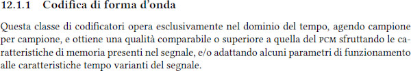 - - ADPCM (Adaptive Differential Pulse Code Modulation) che estende il principio di predittività modificando nel tempo la propria dinamica di azione.