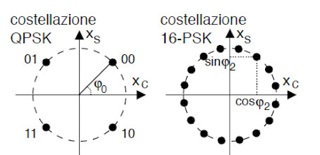 - QPSK e L-PSK, dove Q = Quad e L = n. livelli > 4