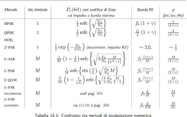 Come si vede, la modulazione QAM fornisce prestazioni superiori alla PSK