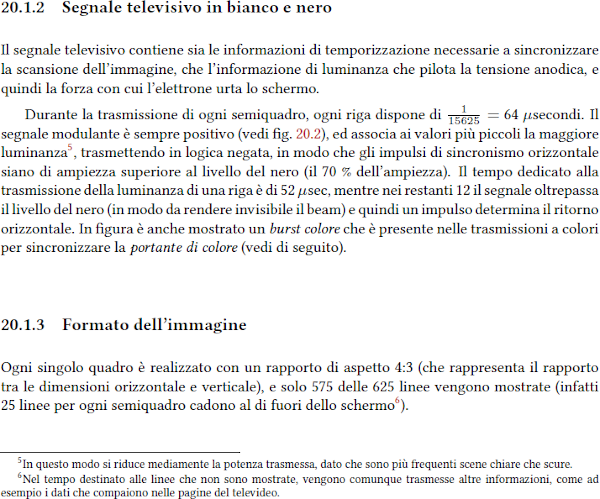 Ogni quadro è composto da 625 linee e si hanno 25 quadri al secondo ossia 15.625 righe al secondo (frequenza di riga).