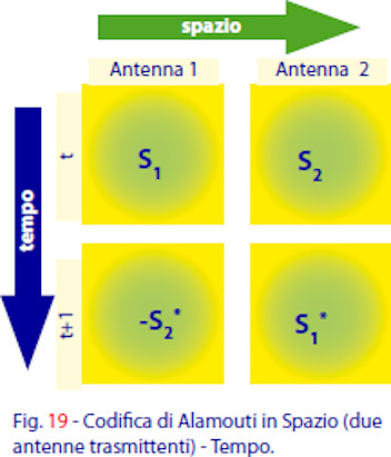 - - Possibilità di trasmissione con antenne multiple, basata sulla tecnica di Alamouti, che consente di migliorare la ricezione di segnali di pari livello provenienti da due trasmettitori.