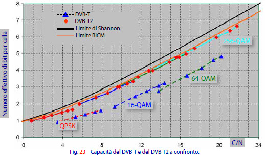 - Si presenta come uno standard stabile (con improbabili evoluzioni a tempi brevi) perché l’efficienza spettrale è prossima al limite teorico (Shannon). L’impegno per la sostituzione degli IRD, sarà quindi compensato da una loro lunga durata nel tempo.