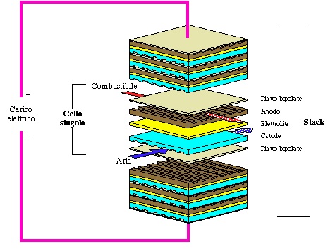 Le celle aossidi solidi sono dispositivi elettrochimici che nella forma planare sono costituitida due elettrodi di materiale poroso tra i quali è interposto elettrolita formato da due fogli sottili di ossido di zirconia stabilizzato con ittrio.
