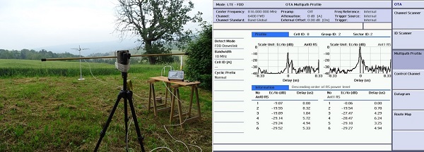 La misura quindi si imposta inizialmente con il posizionamento di due pali distanti oltre l’inizio del campo lontano, per ottenere in ricezione un segnale formato da un’onda piana, quindi in zona di Fraunhofer e di altezza almeno superiore ad alcune lunghezza d’onda (preferibilmente > 3λ). Per effettuare tale misura è necessario utilizzare un Misuratore di antenna vettoriale a due porte, in modalità misura S21 e con possibilità di analizzare lo spettro e il multipatch dei segnali ricevuti (risposta di impulso). La procedura consiste nel cercare di posizionare e allestire il punto di misura in una posizione non intralciante per la misura stessa e quindi di trasmettere il segnale sweep e modulato da una postazione fissa utilizzando un tipo di antenna direttiva, per limitare maggiormente le riflessioni. Prima di iniziare è necessario calibrare lo strumento, azzerando i due cavi di collegamento antenne che dovranno essere uguali, in modo che lo strumento non consideri più l’attenuazione e l'impedenza del cavo, ma soltanto l’attenuazione o il guadagno delle antenne. Questa procedura la si può effettuare utilizzando due giunture a bassa perdita e il più corte possibile, in maniera da non incidere più di tanto sulla differenza di fase quando si collegheranno le antenne in prova.