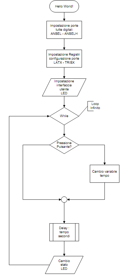 if (Button==1) // è ancora premuto? tempo = (tempo == T1) ? T2 : T1; // cambio frequenza di lampeggio