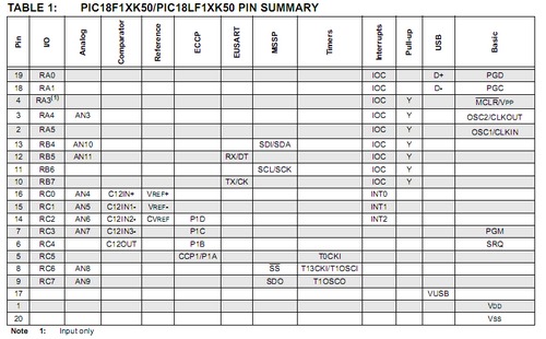 Trovato un dispositivo che faccia al caso nostro è d'obbligo scaricarsi il datasheet ( messo a disposizione gratuitamente e liberamente da Microchip) per controllare alcune informazioni di base. Bisognerebbe controllare sul datasheet la corrispondenza del dispositivo alle nostre necessita facendo un rapido controllo sul numero di tutte le caratteristiche a noi necessarie. Dopodichè si deve passare a studiare un po' più approfonditamente le sue caratteristiche! All'inizio del documento c'è sempre una tabella riassuntiva che mostra la disposizione delle caratteristiche sui rispettivi pin.