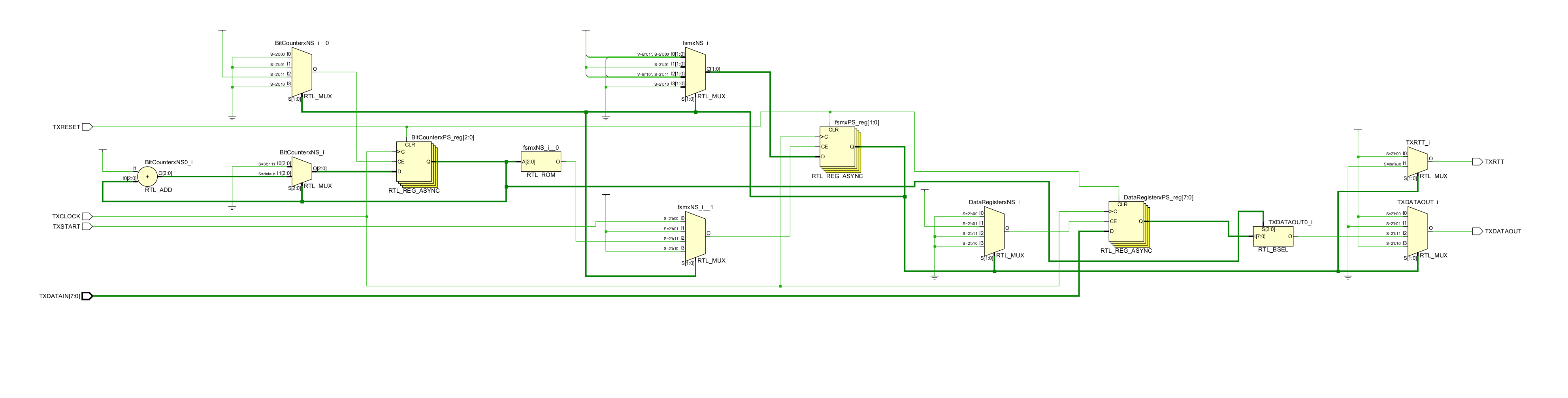 type state_type is (idle, start, stop, transmitting); signal fsmxPS, fsmxNS: state_type; signal BitCounterxPS, BitCounterxNS: integer range 0 to bit_num-1; signal DataRegisterxPS, DataRegisterxNS: std_logic_vector( bit_num-1 downto 0 );