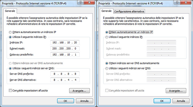 (Nella mia rete il servizio DHCP è svolto dal mio router/modem)