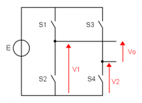 La presente piccola trattazione scaturisce a seguito di un post PWM e calcolo del valore medio nel quale una studentessa, in verità presa dal panico del giorno prima dell’esame, cercava aiuto in riferimento alla possibilità di generare una tensione negativa a partire da una positiva sfruttando una modulazione PWM. Non avendo dei dati precisi da cui partire, e presi dallo spirito di aiutare uno studente in difficoltà, si sono susseguiti dei post (compresi il mio….) che forse, hanno generato l’effetto contrario a quello voluto, che era quello di chiarire le idee; questo mi ha portato a riprendere i miei appunti di elettronica di potenza per dare una rinfrescata ad argomenti che non toccavo da svariati anni. Nel seguito si analizzerà il funzionamento del ponte intero con modulazione asimmetrica a due livelli; si trascureranno le cadute di tensioni sugli interruttori (che nella realtà sono dispositivi a semiconduttore) ed i tempi di commutazione degli stessi.