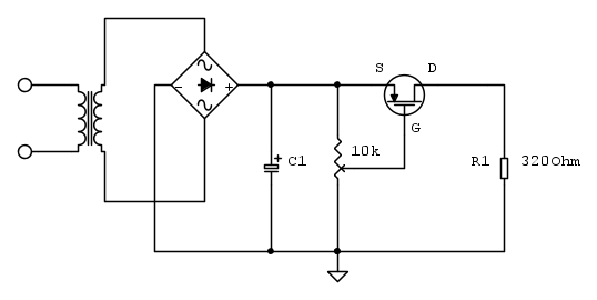 I coccodrilli delle sonde vanno collegati al potenziale di riferimento del circuito, ammesso che questo sia isolato dalla rete. Questo per esempio accade in tutti i circuiti alimentati in bassa tensione ricavata mediante l’utilizzo di un trasformatore. Nell’immagine che segue il riferimento del semplice circuito alimentatore è isolato dal riferimento dell’oscilloscopio e conseguentemente dalla terra.