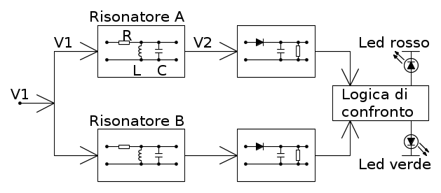 Con riferimento allo schema a blocchi quì sopra riportato, il problema che risolveremo è quello di simulare il filtro indicato come "Risonatore A".
