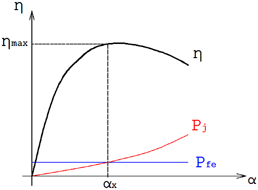 Il massimo rendimento si ottiene quando le perdite nel rame coincidono con le perdite nel ferro: