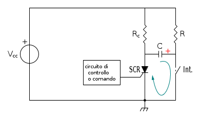 In questo modo si chiude il circuito formato da C e SCR, così facendo viene a circolare una corrente generata da C che si oppone a