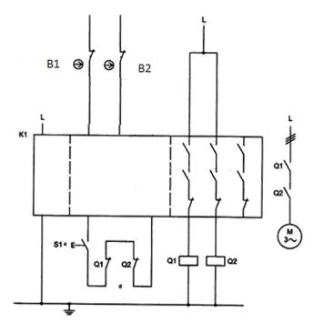 - funzione di arresto di emergenza: a meno di poter escludere il guasto meccanico del pulsante di arresto di emergenza (ad esempio “distacco del frutto”), anche utilizzando due contatti elettrici del pulsante non è possibile raggiungere un PL superiore a “c” (ovvero il circuito di comando è conforme all'architettura di categoria 1 secondo la norma UNI EN ISO 13849-1:2008);