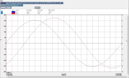 In questa prova si verifica la correttezza del primo valore (60°) del settore angolare : si applicano contemporaneamente alla PG le grandezze Io> e Vo partendo con uno sfasamento iniziale di 50° aumentandolo quindi a passi di 1° fino a trovare il valore angolare dove interviene la PG. La stessa prova va ripetuta per il secondo valore angolare (120°), ma non vengono qui riportati i risultati della prova di scatto per non appesantire troppo l'articolo.