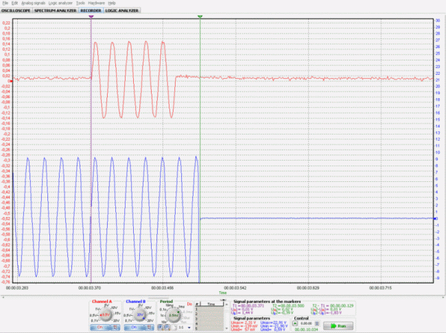 - Si predispone ora il POSCOPE in funzione di "RECORDER" e si avvia la registrazione, quindi si inietta (TEST) la corrente di prova facendo intervenire il SPG con l'apertura dell'interruttore MT arrestando poco dopo la registrazione.