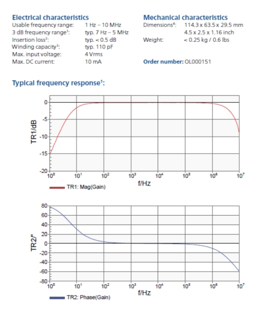 1b) massima banda passante possibile (entro -3 dB), min. da pochi Hz fino al max. di 10 MHz e oltre (possibilmente)