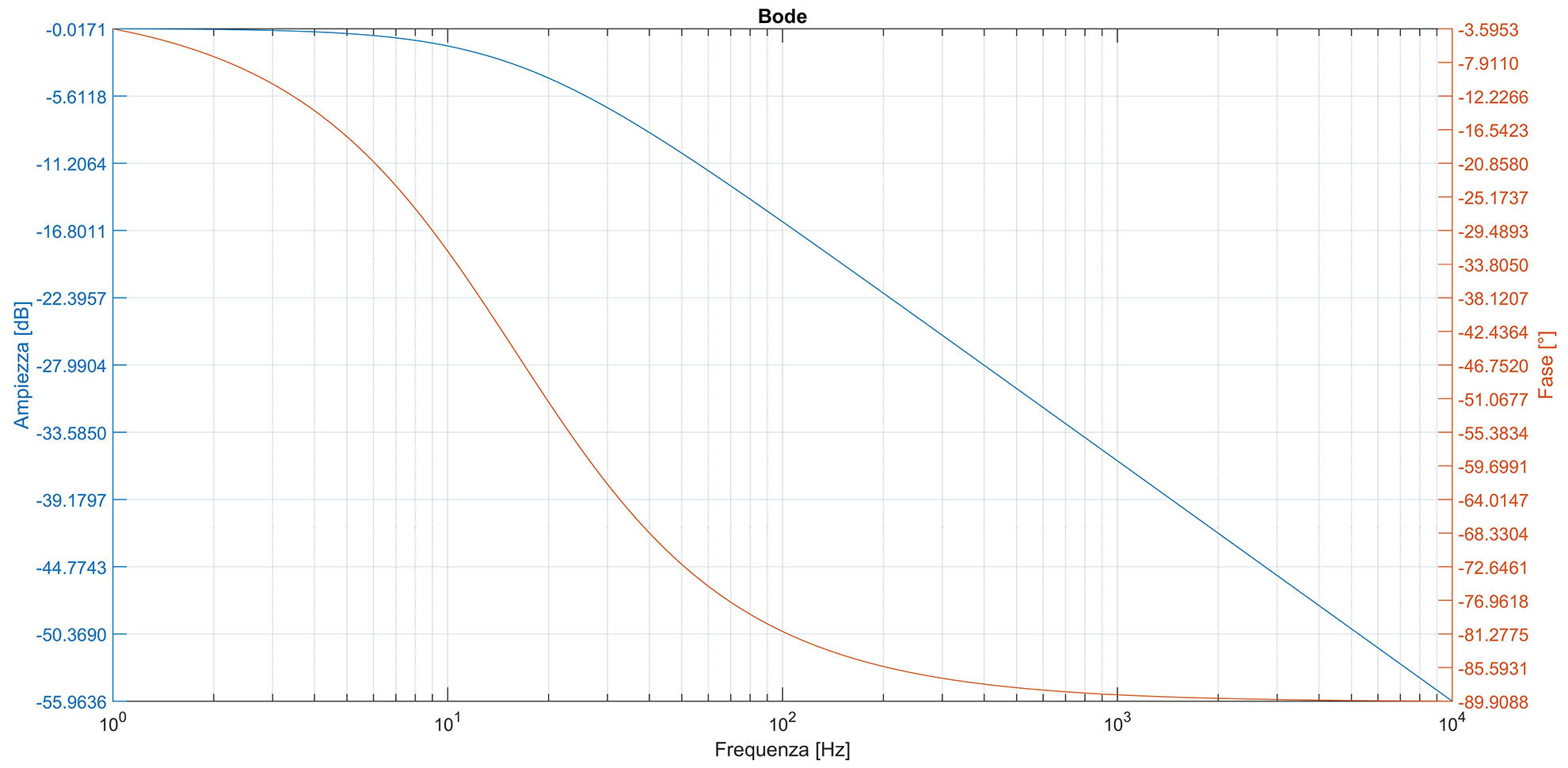 Alla riga 16 il vettore delle frequenze è settato in modo da rappresentare adeguatamente il diagramma di Bode in esame, cercando di mantenere ragionevole il tempo di esecuzione. Modificarlo a piacere per restringere/allargare l'asse delle ascisse.