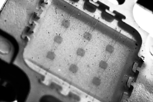 Sembrano composti da più LED, una matrice 3x3. Incuriosito, mi sono avvicinato un po'. Con macro così spinte la profondità di campo è ridottissima.