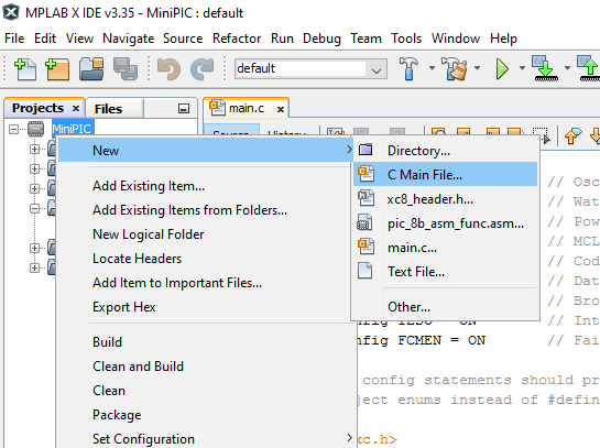 Creare un nuovo progetto su MPLAB, configurandolo per il PICkit3 e il PIC12F683