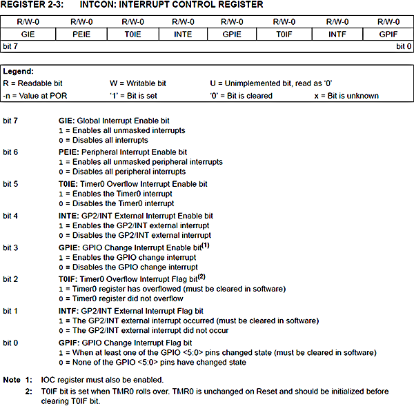 A pagina 15 del datasheet viene descritto il registro INTCON: