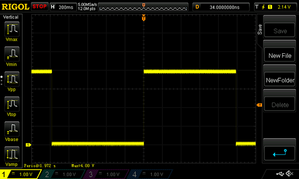Forma d'onda sul pin 2 del PIC12F683: