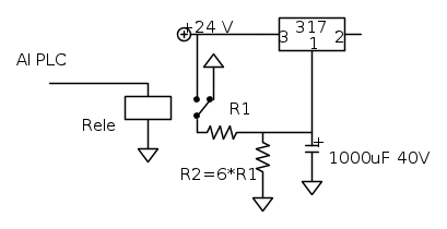 Il PLC aziona il rele`, quando lo attiva la tensione sale da circa 1.2V fin verso i 21V, e quando il rele` e` rilasciato, la tensione torna a 1.2V