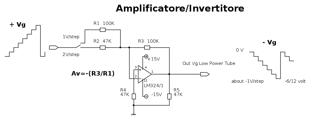 Sul circuito c'è poco da dire se non che è un ampli invertente con guadagno 1 o 2 ma in uscita il segnale si comporta in modo anomalo e i gradini hanno step di