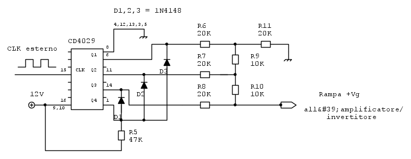 aduri ha scritto:Il segnale è prodotto da un contatore CMOS CD4029 alimentato a +12V con una alimentatore separato.