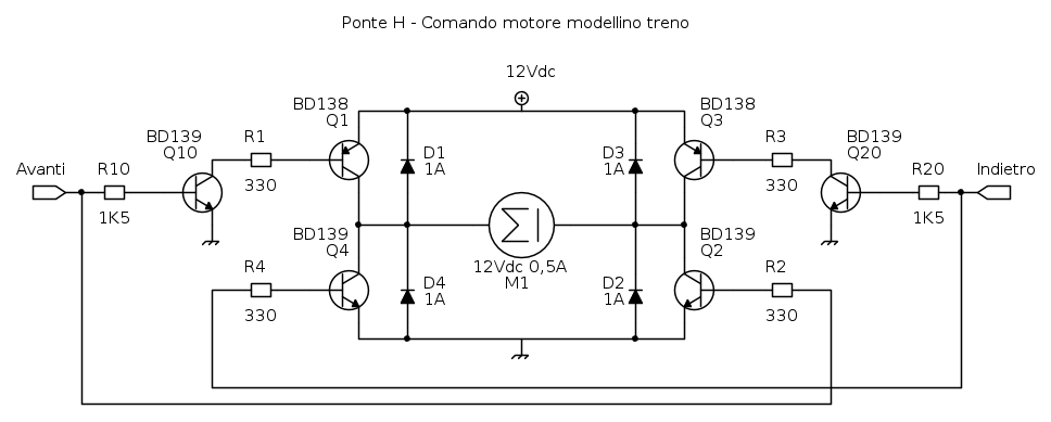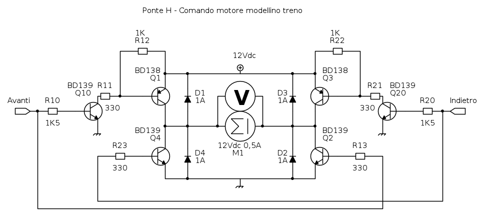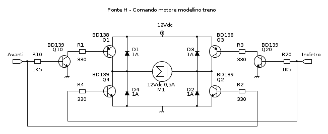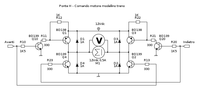 Senza carico il circuito esce con i 12V sia in positivo che in negativo, appena collego il treno lo vedo muoversi lento e se misuro mi trovo con solo 3V... ho già provato a ri-eseguire i calcoli, a semplificare il circuito collegando solo un pnp ed un npn in modo da escludere il possibile e lavorare sul semplice ma anche qui stesso discorso.