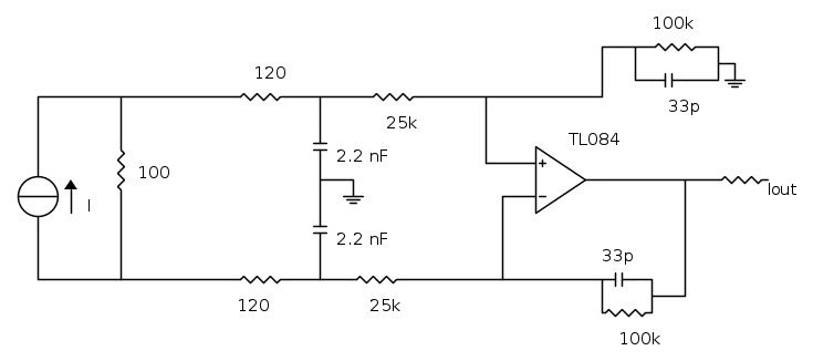 Salve a tutti. Devo fare i diagrammi di bode per questo opamp. L'ingresso sono 100 A e l'uscita 20 mA.