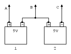 Quindi il potenziale della Pila "1" si puo' trovare a +9V rispetto al punto "B",ma anche a potenziale +18V rispetto al punto C della pila 2