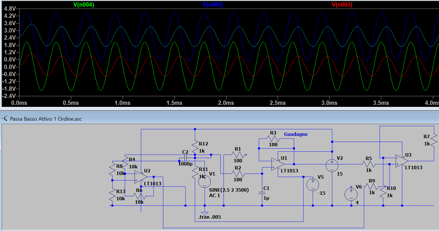 Ora stò provando con un Filtro Attivo di 2° Ordine. Inizialmente lavoro solo sul simulatore.