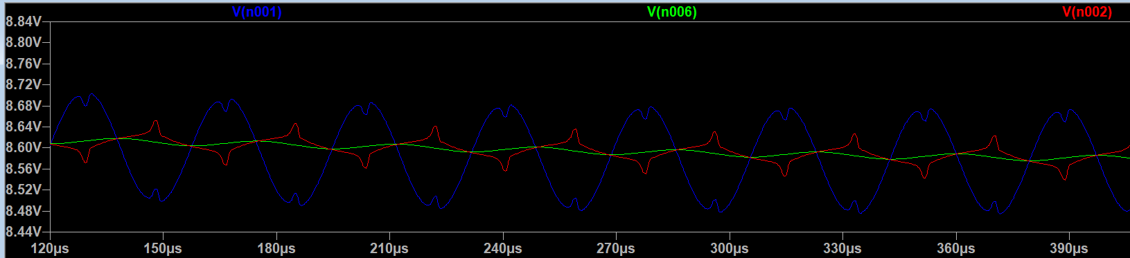 ho cercato di eliminare la parte continua con il seguente circuito in ingresso: