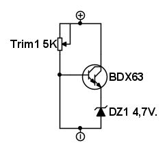 Ora se fosse vero che con un transistor di potenza e poco altro è possibile realizzare uno zener di potenza a tensione regolabile sarebbe per me un circuito da tenere seria considerazione in caso di occorrenza e per un uso particolare.