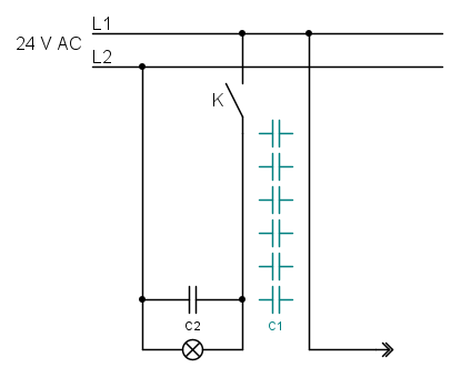 Chiaro, grazie per la spiegazione, l'unica cosa che non mi torna ora è che il mio caso è come il primo disegno ovvero ho un quadro in cui è presente l'alimentazione 24 V ac è presente il relè il cui contatto alimenta la spia led in campo (a diversi metri). Quindi il condensatore che ho aggiunto è in parallelo al led ed è in parallelo alle capacità parassite. Appena l'ho collegato a relè diseccitato il led (debolmente illuminato) si è spento. Con relè eccitato si accende.
