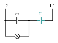è bassa, più la corrente scorrerà preferenzialmente da lì anziché nel ramo dell'indicatore luminoso, attenuando l'effetto, ed anche qui la reattanza capacitiva è inversamente proporzionale al valore di capacità: