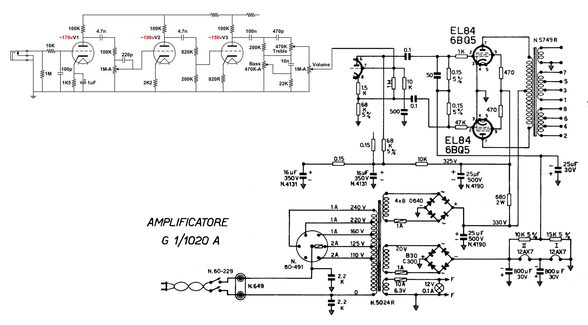 il pre scelto (e, se ne è discuso, vuole quello) sfrutta tutti i 3 triodi disponibili (una 12ax7 + 1/2 12ax7) e, sfortunatamente, il controllo toni è posizionato tra l'ultimo triodo e la sfasatrice
