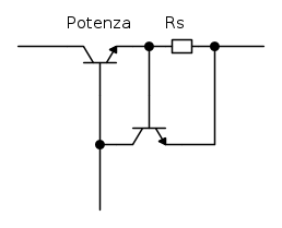 Sì TF, si può fare in quel modo ma porta alcune limitazioni... ad esempio non puoi scendere troppo con la soglia di corrente... comunque ci vogliono circa 0.6V per farla entrare in azione... allora per 100mA di soglia ci vorrebbero 6ohm ... ma poi con 2A ci cadono 12V