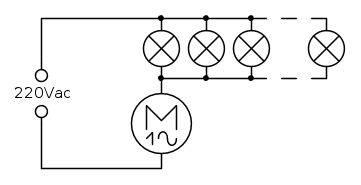Le lampade che intendi tu sono per la segnalazione, sono di piccola potenza e si montano in parallelo al motore, non in serie.