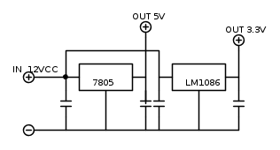 Nonostante il LM1086/33 sia un regolatore low drop out, non e' consigliabile collegarlo ai 5V.
