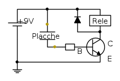 il positivo (della 9v) l'ho collegato come da schema, ad una delle 2 placche e contemporaneamente ad un polo del rele' che a sua volta è collegato al positivo del diodo (quello dove è la banda vero? non vorrei sbagliare non essendo un esperto ma di sicuro se nn fosse il negativo, per lo meno di sicuro è dal lato della banda del diodo) mentre il filo che "esce" dall'altra placca, passa per la resistenza da 10k e va alla base del transistor, il negativo del diodo (che tocca anche l'altro polo del rele') va sul collettore del transistor, mentre il negativo della batteria 9v va direttamente all'emittore... dove sbaglio? ovviamente ho fatto una prova "al volo" poi magari una volta che avrò visto che funziona lo collego ad una millefori oppure assemblo il tutto sopra il rele' e magari poi lo isolo con del nastro... ma prevedo di utilizzare poi una millefori e magari il sensore della pioggia perché attualmente le placche le ho messe in un piccolo contenitore che dovrei di volta in volta svuotare, a meno che non le lascio "al vento" in modo che quando smette di piovere l'acqua evapora in qualche modo... ma a questo punto, visto il costo, prendero' il sensore di pioggia... dunque perché anche "svuotando" le placche perché il rele' funziona lo stesso?
