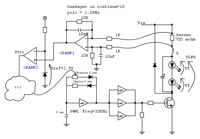 Eventuali disturbi... non so il 100Hz della Vin se questa arriva da un trafo+ponte, questo non riuscirei a filtrarlo e quindi mi troverei il mio segnale di errore che presenta questa frequenza. Però ... Boh... mi sa che sto dicendo una cagata...