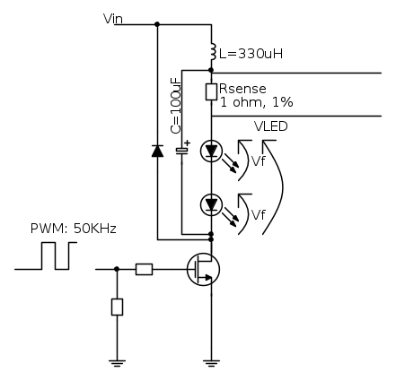 Se duty=0.5, I out= 350mA, con Vin=12 e Vled=6.