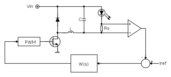 Premesso che esistono altri sistemi di controllo per questa applicazione, come ad esempio un controllo di tipo COFT (Constant Off-Time, per esempio questo) o un controllo di corrente di pico più semplice da implementare, si può tentare di realizzare un controllo di corrente media come da te citato.