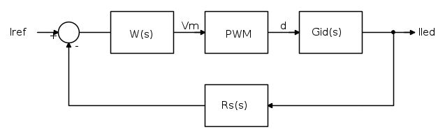 Ho ragionato su questo blocco, che dici essere la funzione di trasferimento tra duty e corrente di uscita.